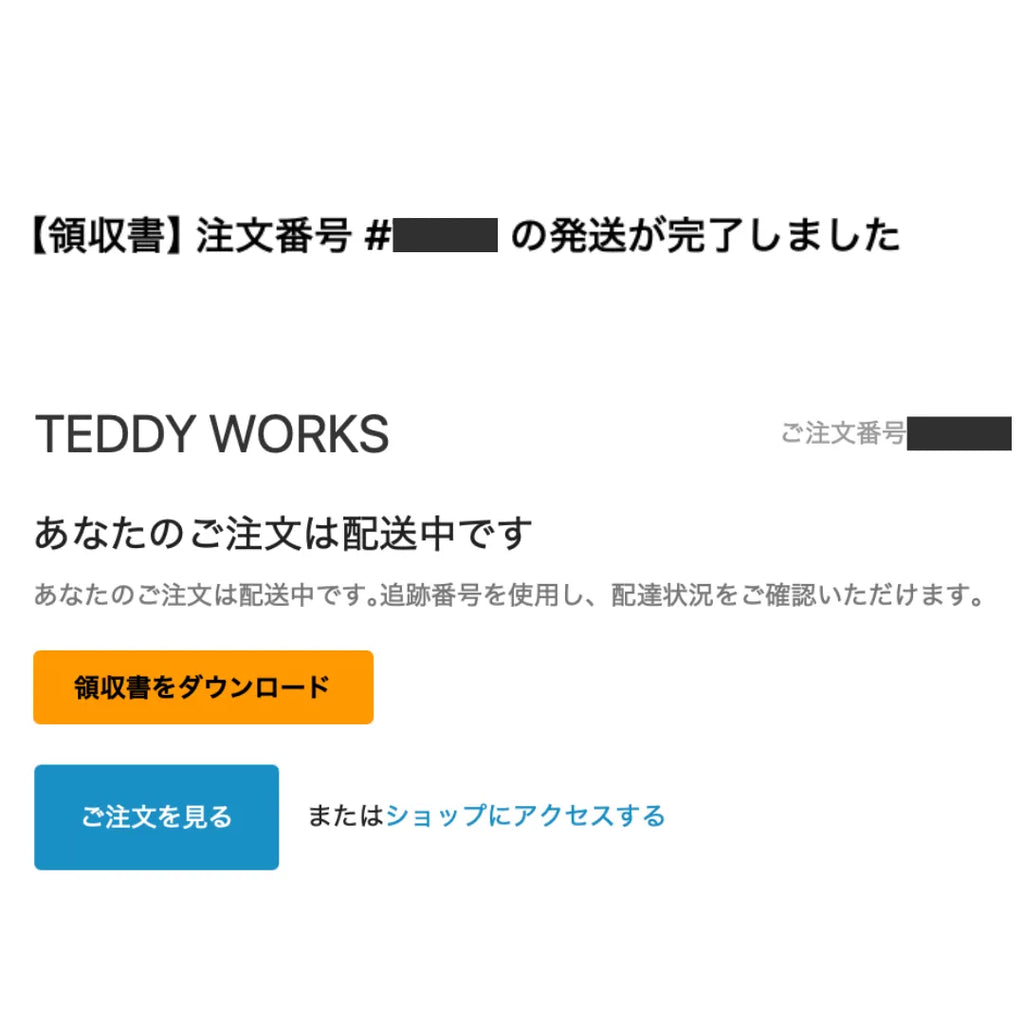 If you still don't receive notifications, please contact us via info@teddyworks.co.jp or LINE, providing your name, phone number, or email address used during the order.