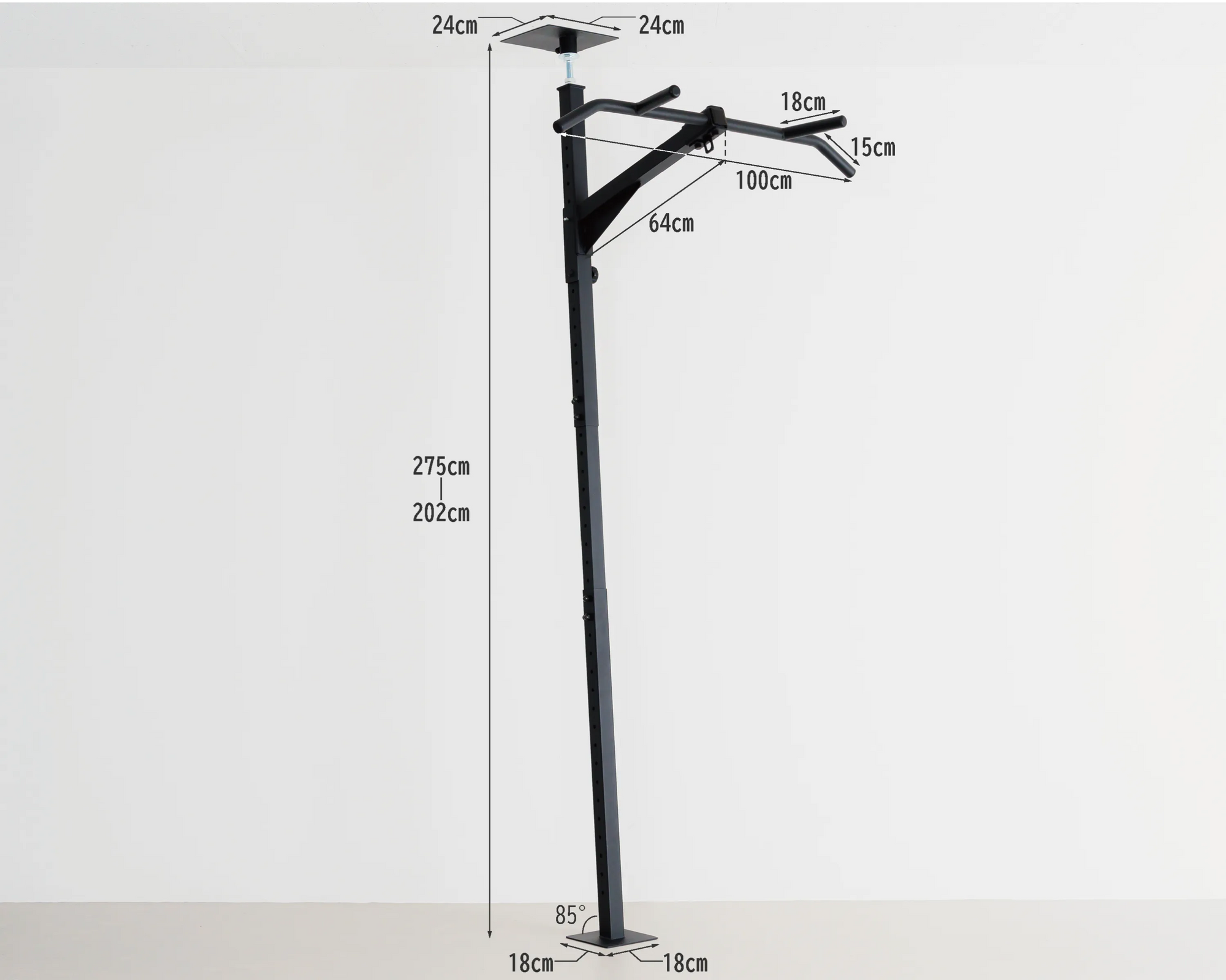 そのため手前方向に転倒することはなく、また強く天井を突っ張らなくても安全に設置可能です。