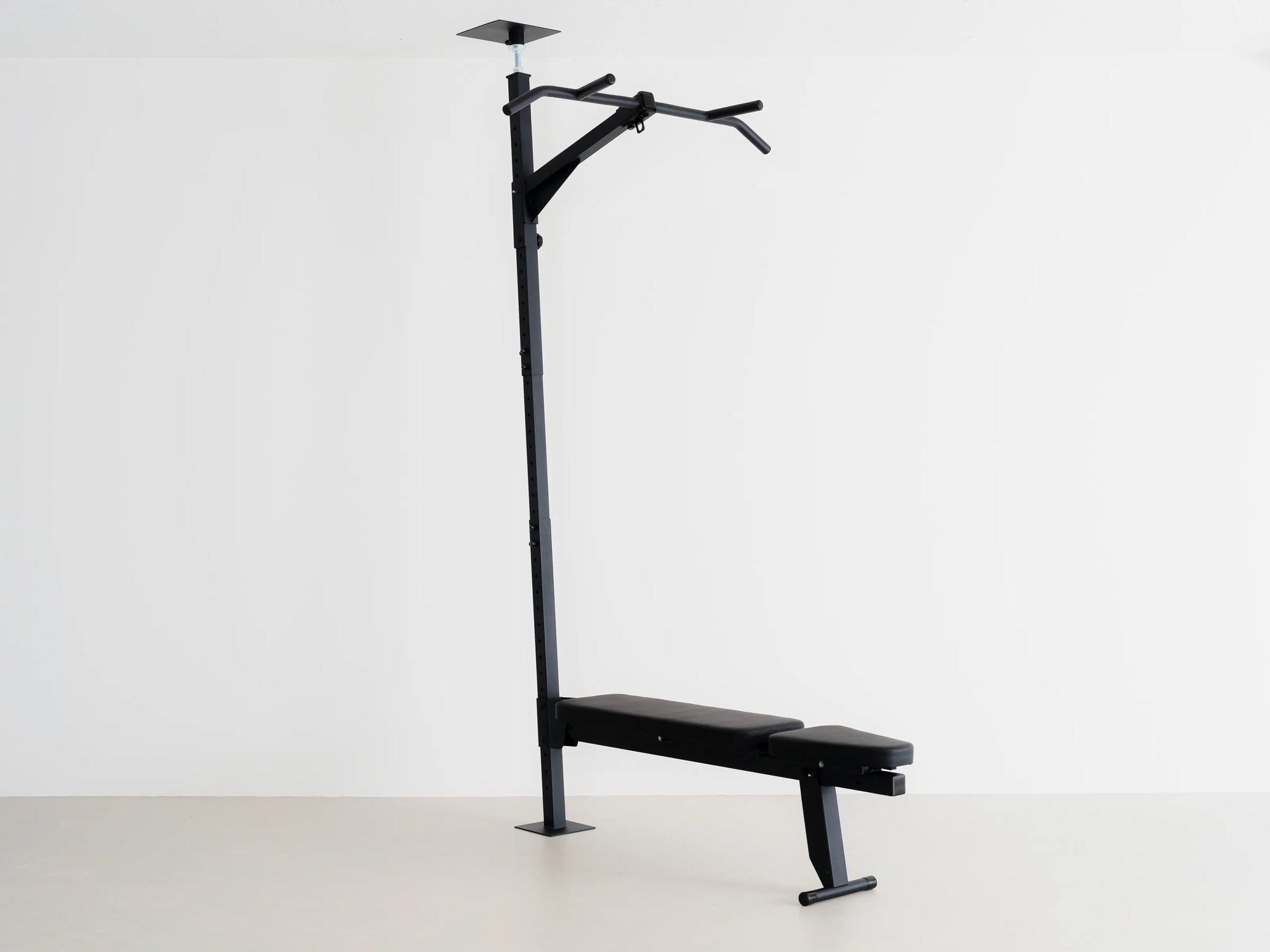 持ち上げるだけで収納できる省スペースなトレーニングベンチ。