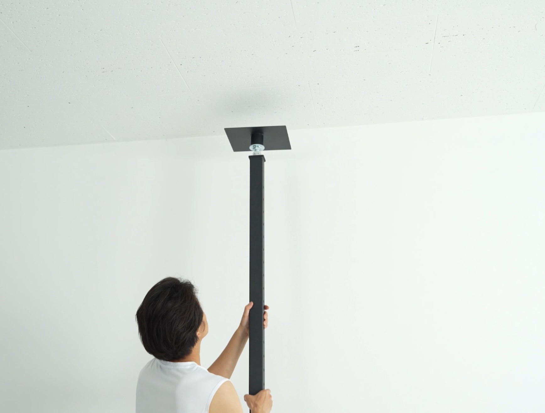 そのため手前方向に転倒することはなく、また強く天井を突っ張らなくても安全に設置可能です。